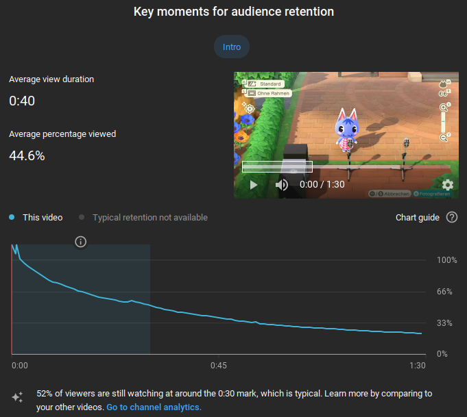 It actually took me a bit to find this graph in the analytics as I haven’t used the analytics at all for so long. They weren’t healthy for me. Seeing that for 12-minute fideos that take 200 hours to make, 50% of viewers stop watching during the first 30 seconds, only 14% watch most of it and only 8% watch until the outro starts is certainly not very motivating. Everyone is different, but if you feel like seeing the analytics is making you unhappy or you check them too often, I recommend setting a rule for yourself not to open them anymore. I don’t see any benefit in knowing your analytics if you create to satisfy your own creative desires. And comments, actual people instead of cold, lifeless, meaningless numbers, should be enough to give you a feeling for how others view your stuff. I made a browser bookmark directly to the Creator Studio’s comments tab so that I wouldn’t have to go past the dashboard analytics first that rub into my face exactly by what percentage I performed worse now compared to the last millisecond. Your last fideo received less views than usual, by the way!